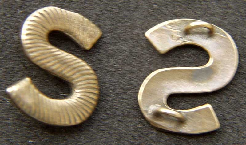 Spanish American War Brass, gold plated sew-on S in false embroidery.