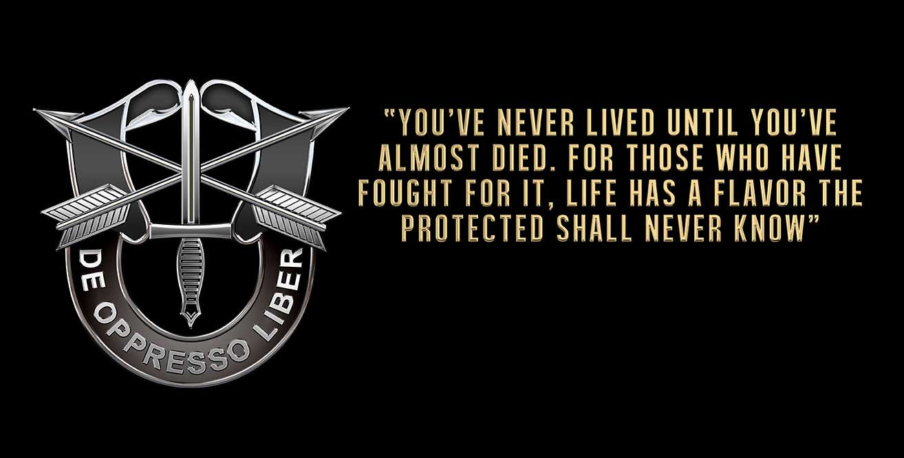 Special Forces Crest “You've never lived until you've almost died. For those who have fought for it, life has a flavor the protected shall never know.” Sign 18 x 9"