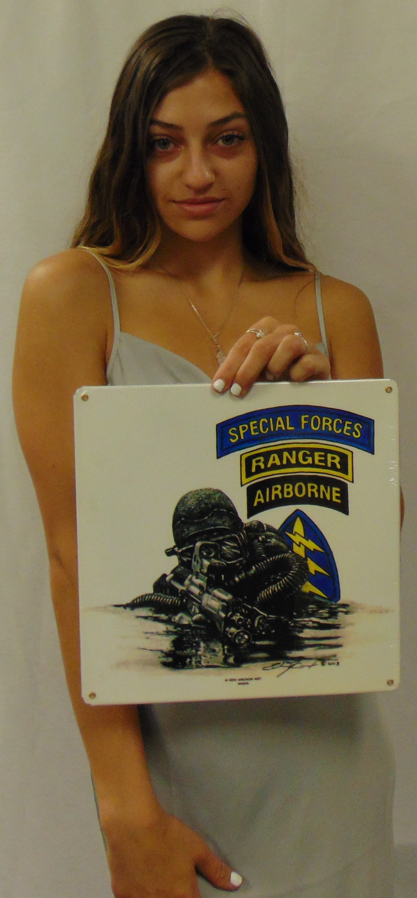 Special Forces Diver by Red Anchor Art Metal Sign measures 12 inches by 12 inches and weighs in at 3 lb(s). This custom metal shape is hand made in the USA using heavy gauge American steel and a process known as sublimation, where the image is baked into a powder coating for a durable and long lasting finish. This custom metal shape is drilled and riveted for easy hanging.