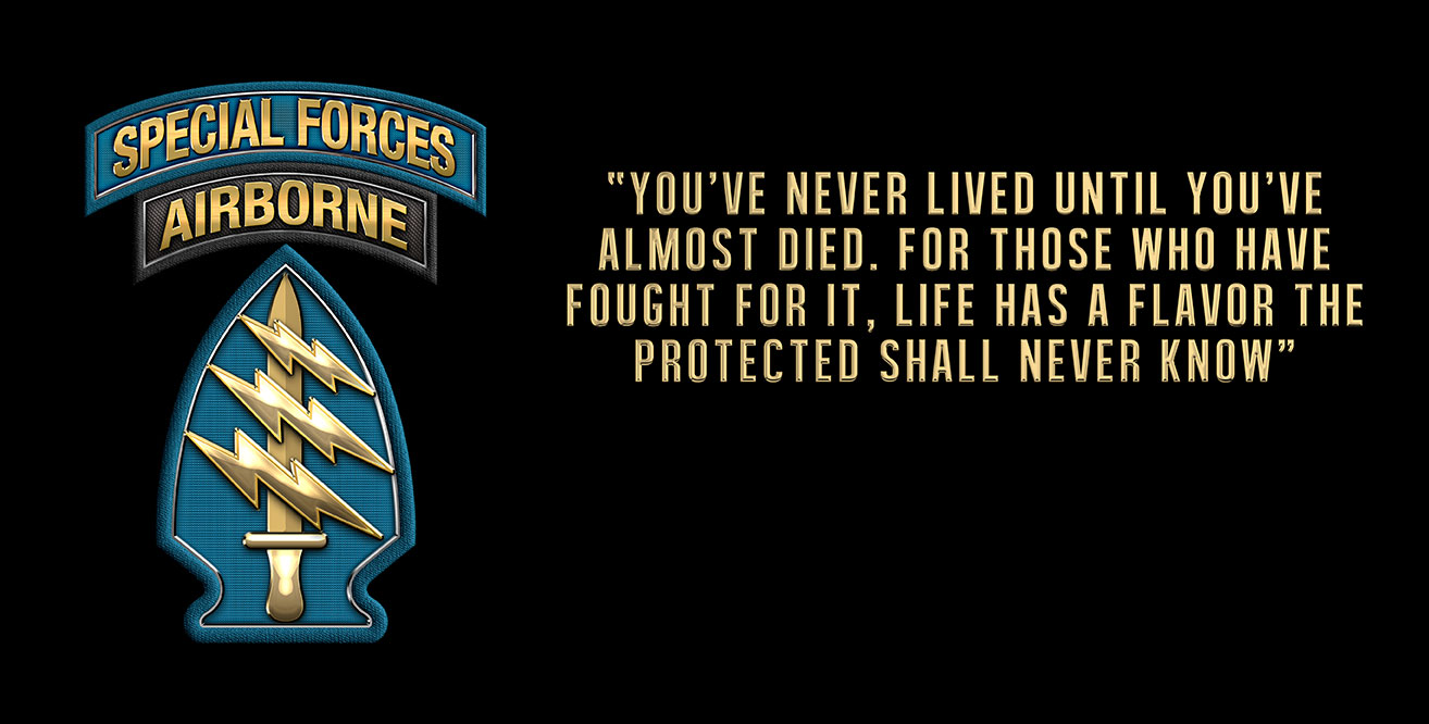 Special Forces SSI “You've never lived until you've almost died. Sign 18 x 9"