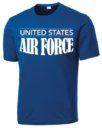 United States Air Force Design Full Front on Performance T-Shirt. Available colors: Blue, Charcoal, Grey and Royal (as shown)