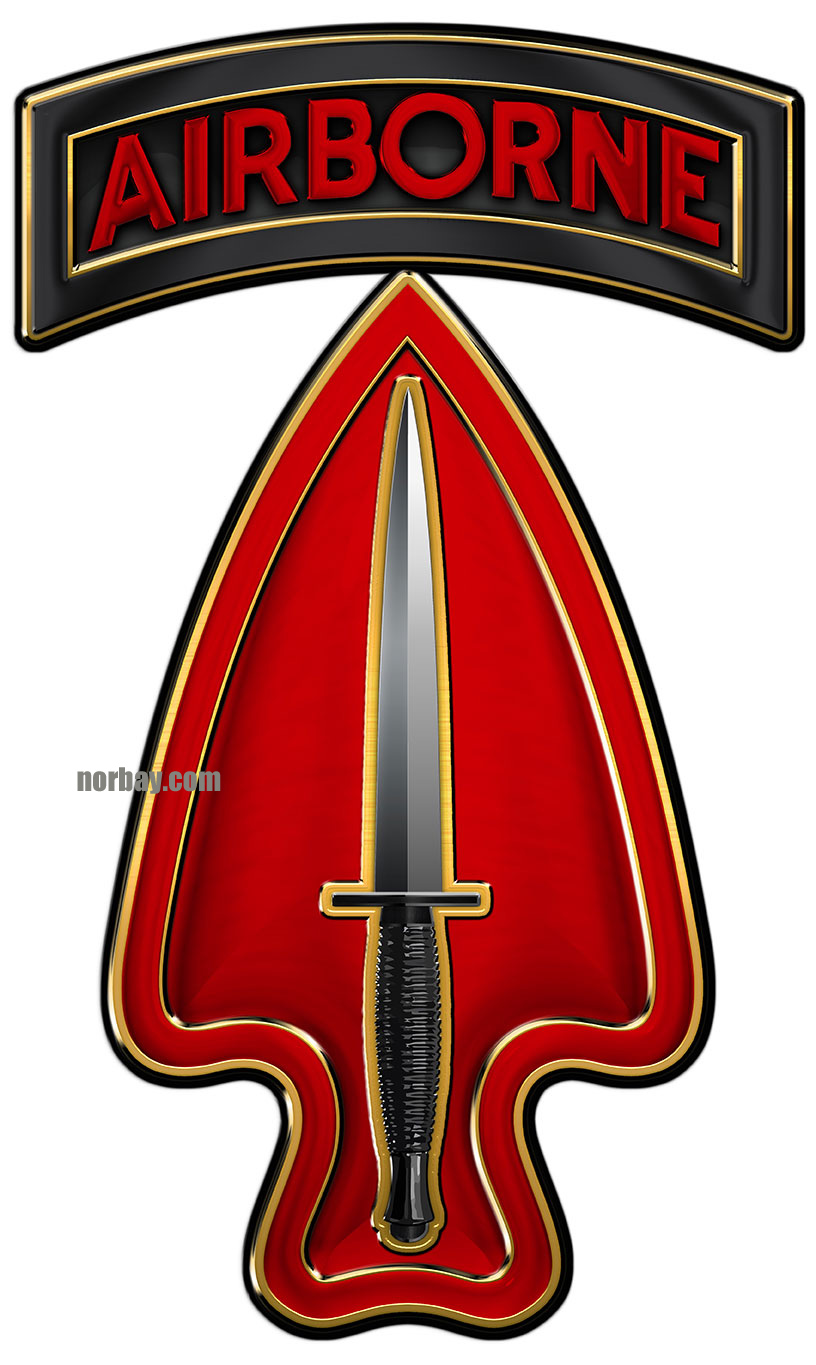 Presented by "Military Insignia 3D" collection by Serge Averbuk, United States Army Special Operations Command (Airborne) (USASOC or ARSOC) all metal shape measures 18 inches by 10 inches and weighs in at 2 lb(s). We hand make all of our custom metal shapes in the USA using heavy gauge american steel and a process known as sublimation, where the image is baked into a powder coating for a durable and long lasting finish. This custom metal shape is drilled and riveted for easy hanging.