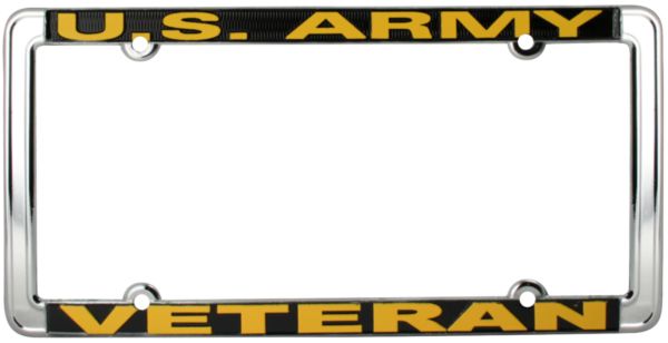 UNITED STATES ARMY VETERAN YELLOW ON BLACK THIN RIM LICENSE PLATE FRAME