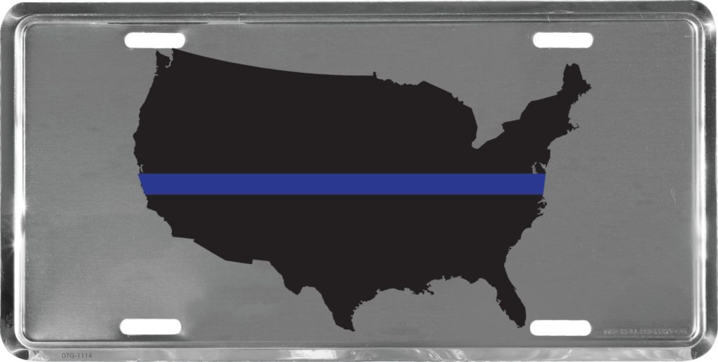 UNITED STATES MAP BLUE STRIPE LICENSE PLATE