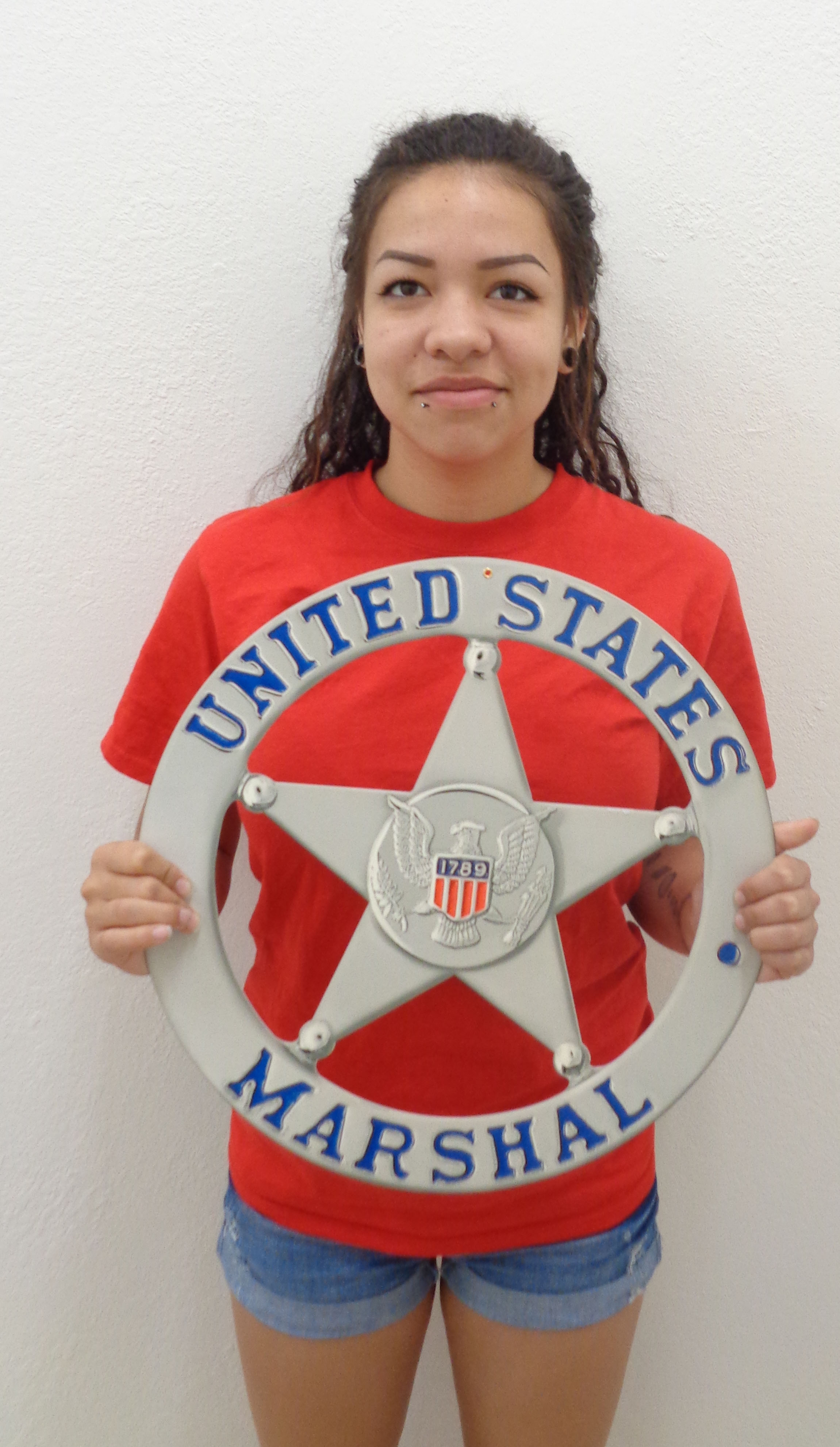 United States Marshal Cut Out Police Badge all Metal Sign  - No Badge Number  This custom metal shape is hand made in the USA using heavy gauge American steel and a process known as sublimation, where the image is baked into a powder coating for a durable and long lasting finish. This custom metal shape is drilled and riveted for easy hanging.