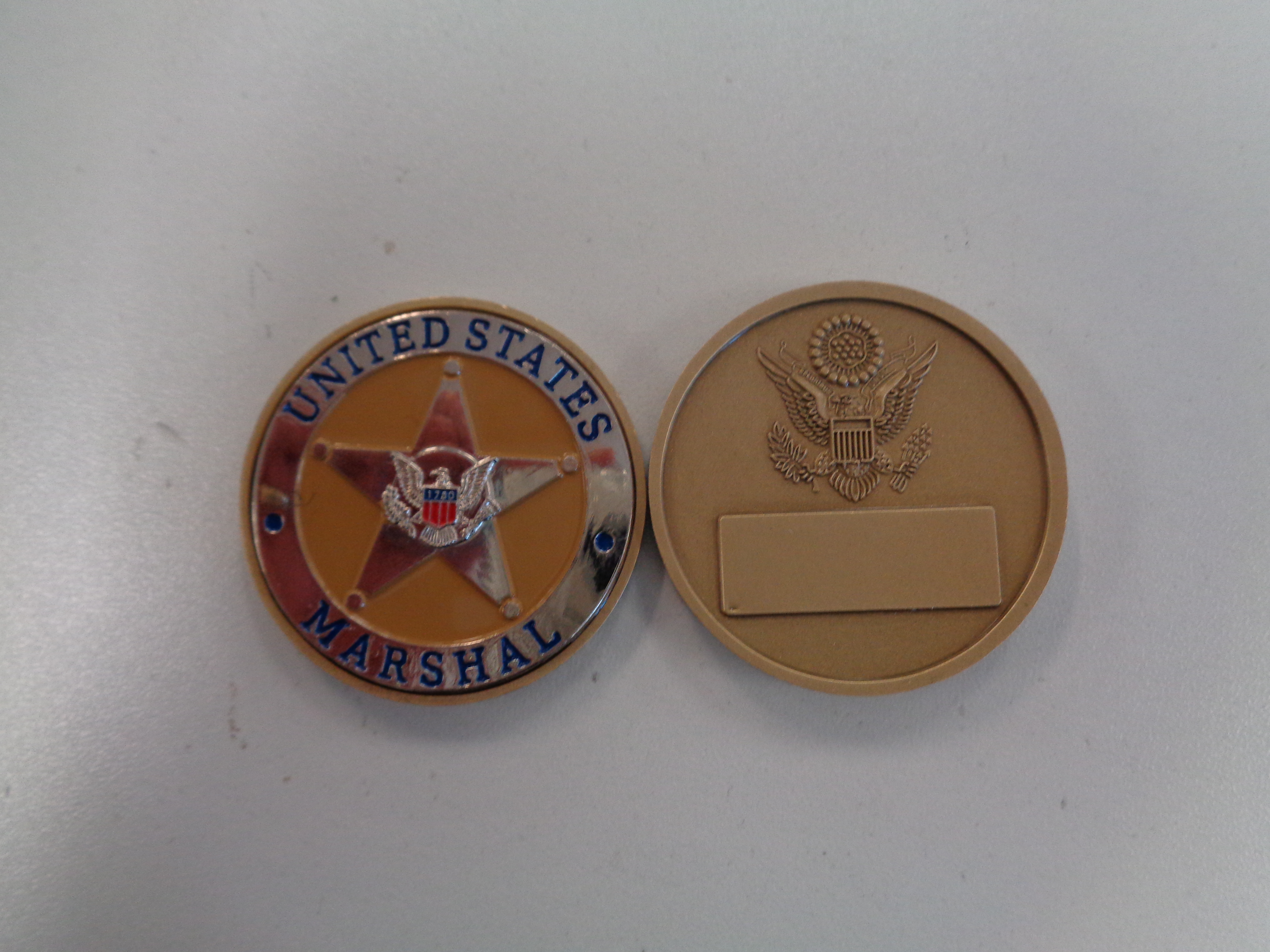 This Challenge coin is handsomely minted. With the Marshall Service badge proudly displayed on one side.