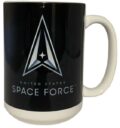 United States Space Force Logo with Galaxy and Earth Photo Sublimation Imprint on a 15 oz. White Mug.