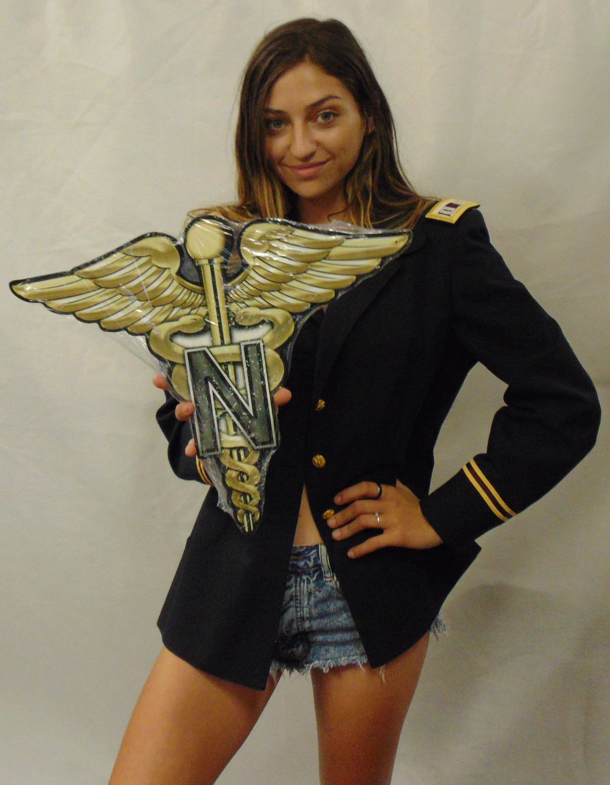 US ARMY NURSE CORPS Cut Out All Metal Sign 18 x 15" . We hand make all of our custom metal shapes in the USA using heavy gauge american steel and a process known as sublimation, where the image is baked into a powder coating for a durable and long lasting finish. This custom metal shape is drilled and riveted for easy hanging.