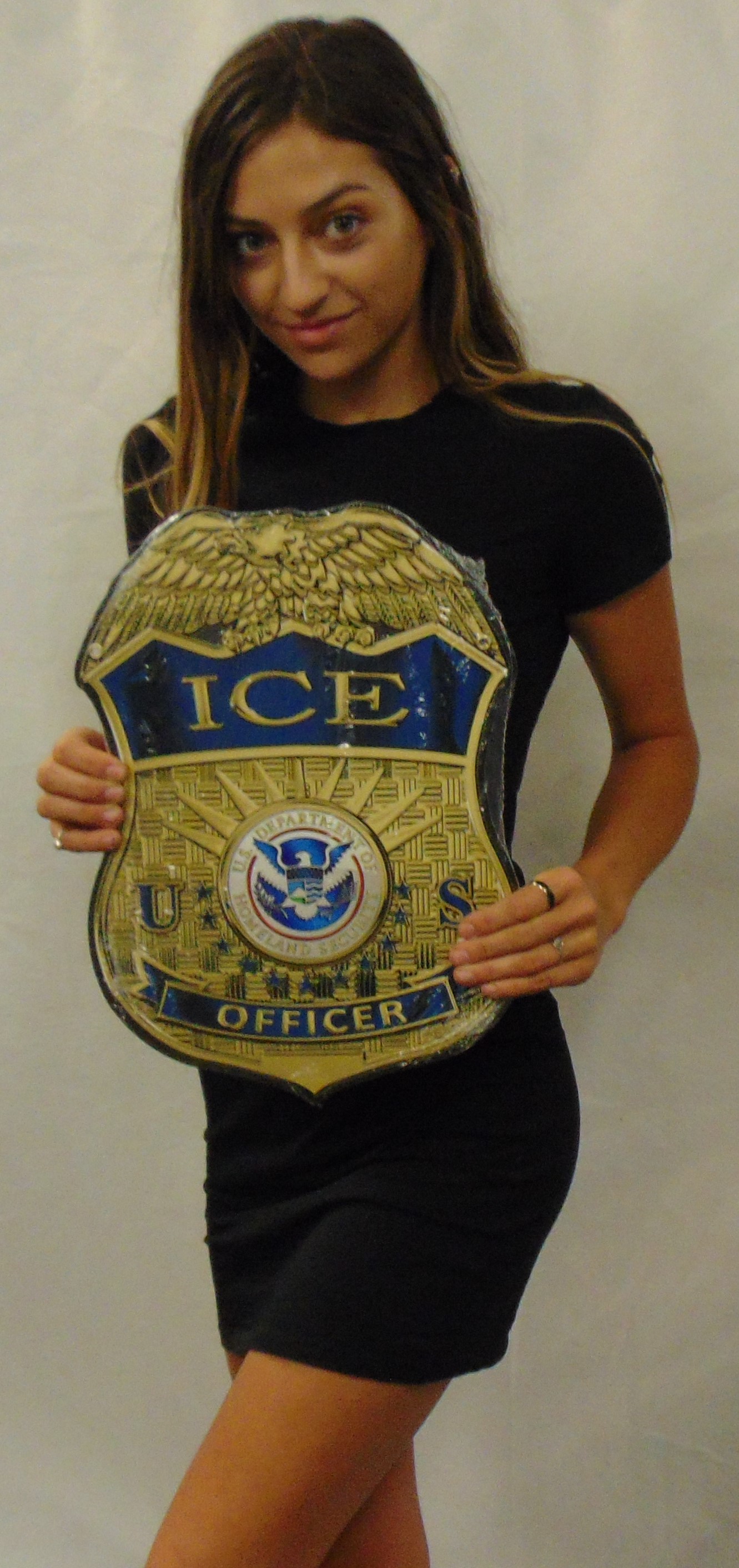 CUSTOMS ENFORCEMENT ICE BADGE all Metal Sign 13" x 17" This custom metal shape is hand made in the USA using heavy gauge American steel and a process known as sublimation, where the image is baked into a powder coating for a durable and long lasting finish. This custom metal shape is drilled and riveted for easy hanging.