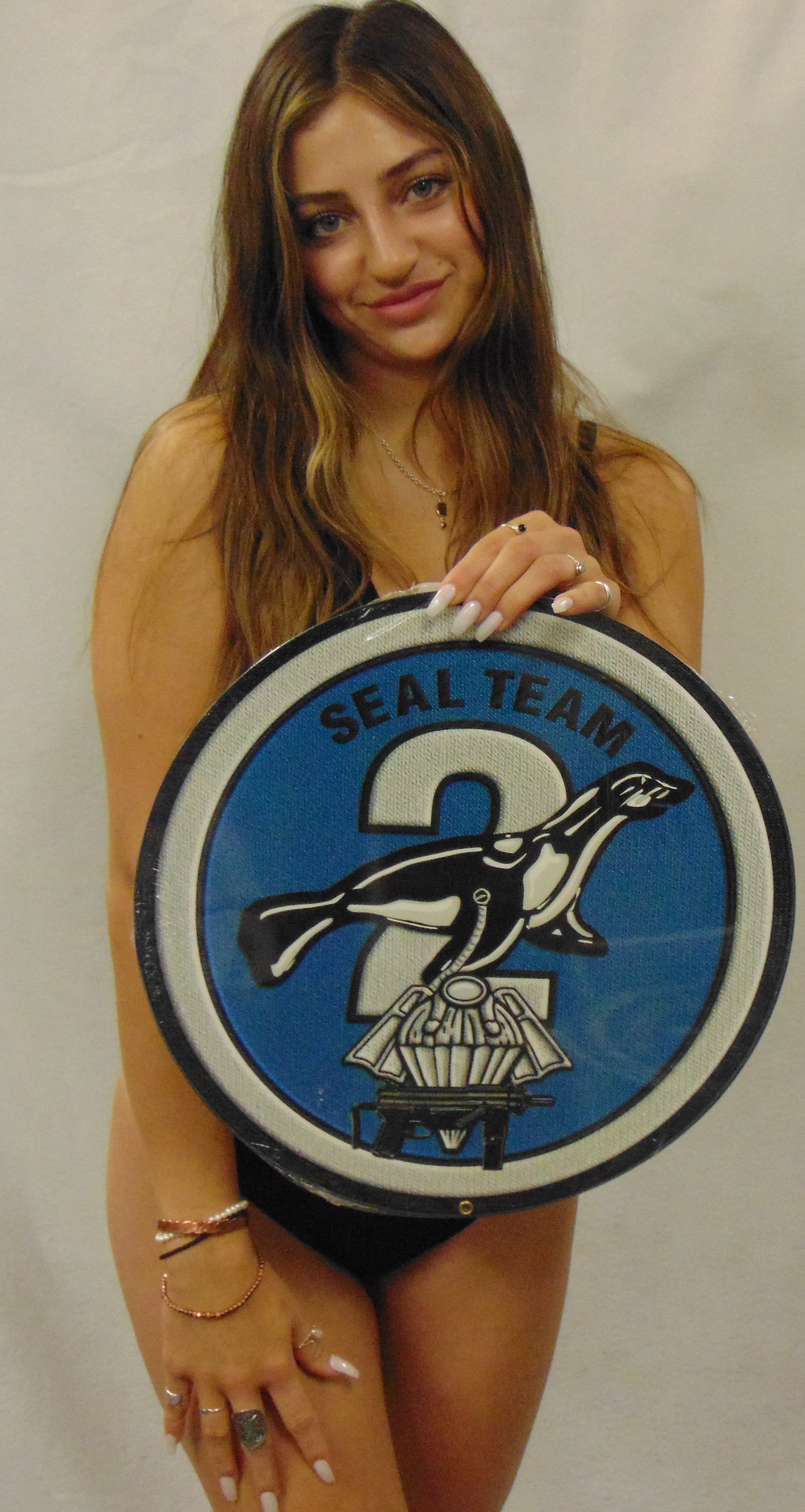 US NAVY SEAL TEAM Two (2) all metal Sign 16" Round.  We hand make all of our custom metal shapes in the USA using heavy gauge american steel and a process known as sublimation, where the image is baked into a powder coating for a durable and long lasting finish. This custom metal shape is drilled and riveted for easy hanging.