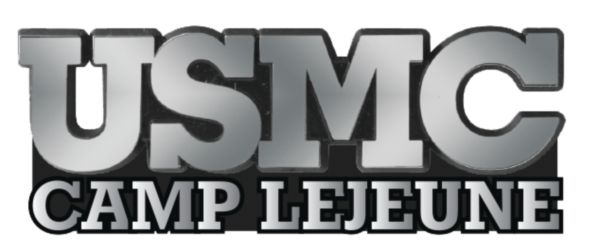 USMC CAMP LEJEUNE PLASTIC CHROME PLATED EMBLEM