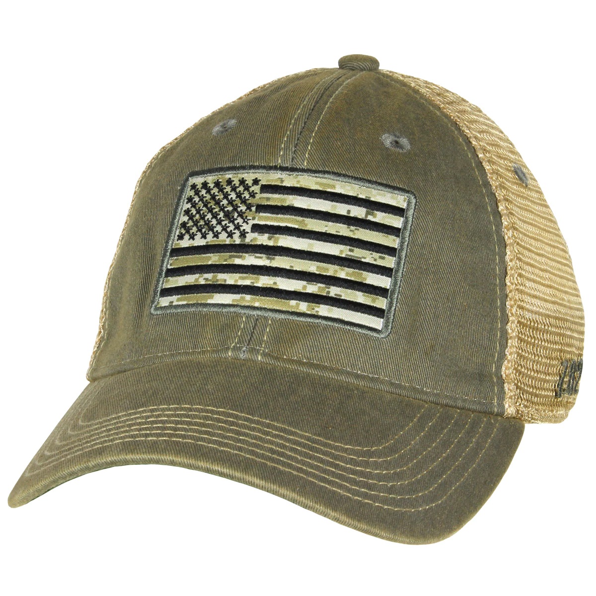 Embroidered Tactical US Flag on a vintage style trucker cap with softened mesh to keep your head happy. Snap back, one-size-fits-all.