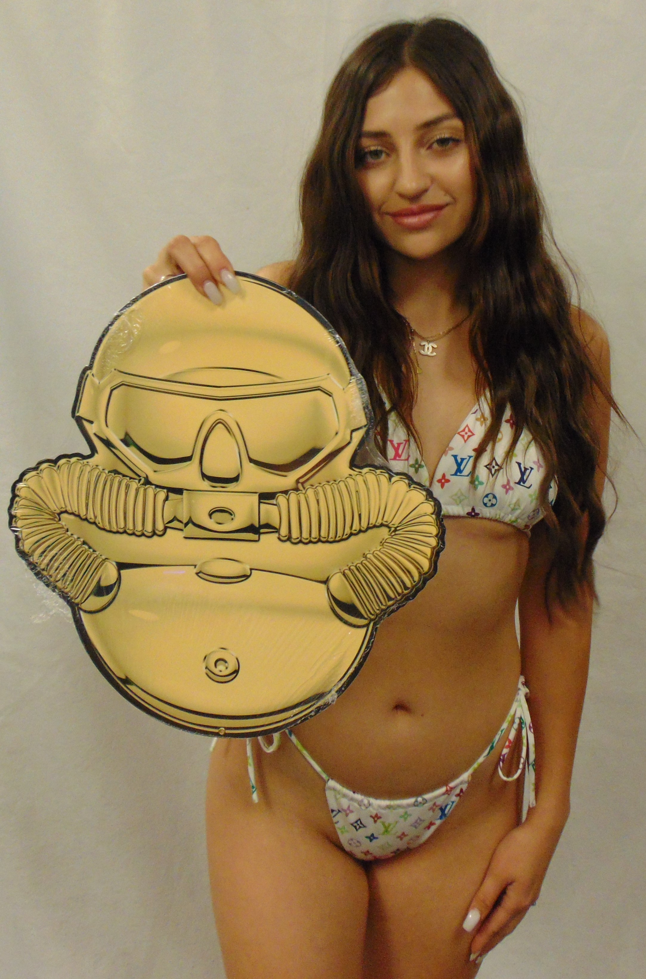 This custom metal shape is hand made in the USA using heavy gauge American steel and a process known as sublimation, where the image is baked into a powder coating for a durable and long lasting finish. This custom metal shape is drilled and riveted for easy hanging.